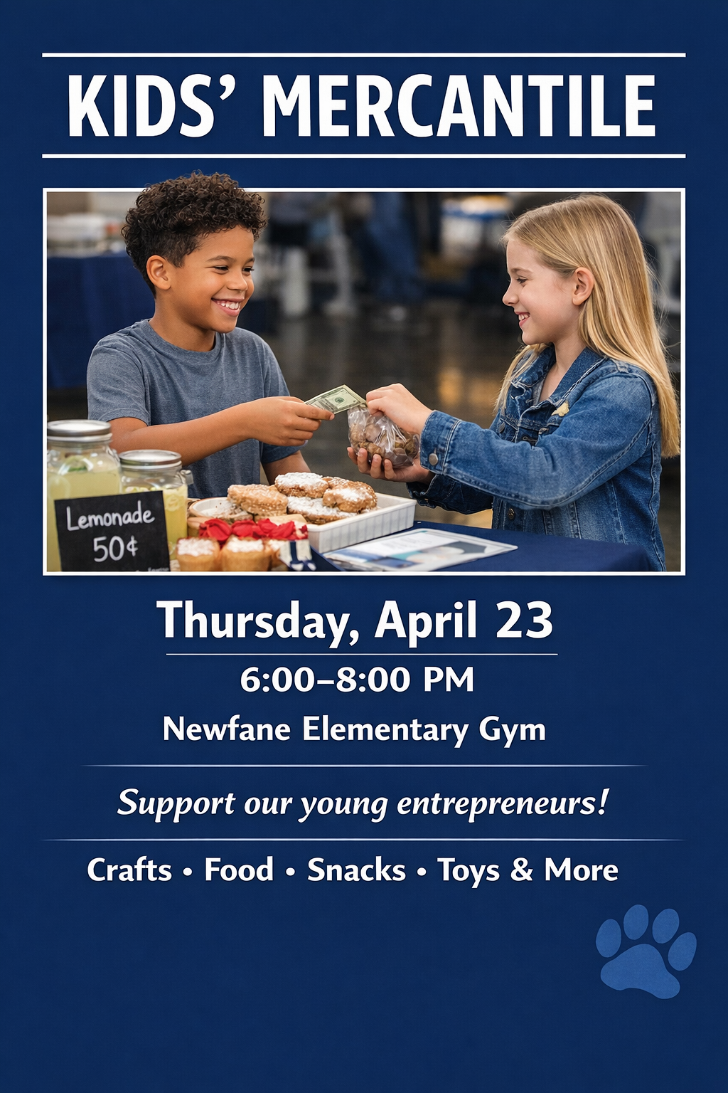 Hello Newfane Elementary Families,We are excited to invite you to a very special event—our 4th Grade Connections Program: Kids’ Mercantile!🗓 Thursday, April 23⏰ 6:00–8:00 PM📍 Newfane Elementary Gym...